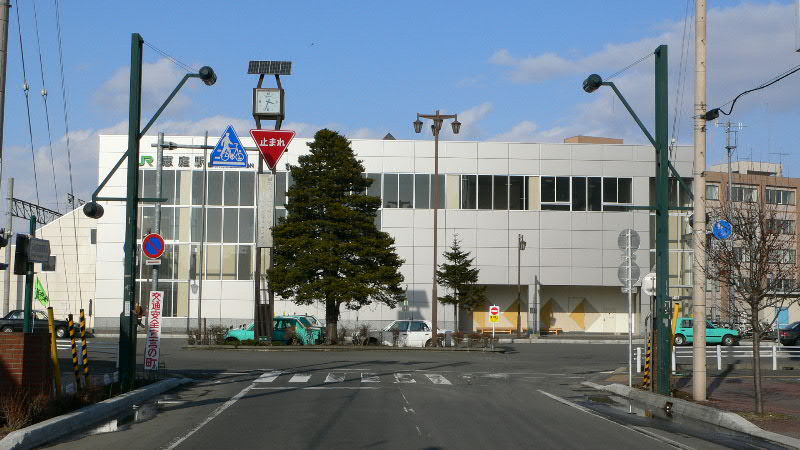 昔の恵庭駅は地上の木造駅でした。駅前は砂利道で木造の家屋が有りました。