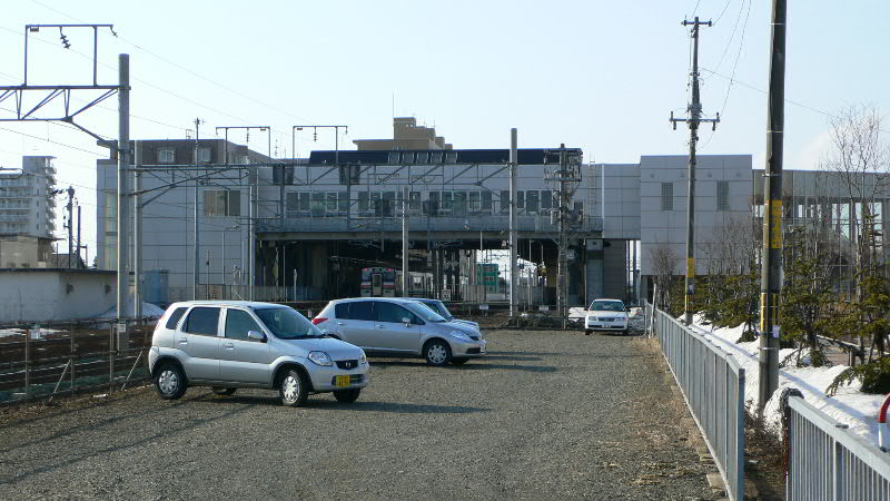 昔の恵庭駅は地上の木造駅でした。駅前は砂利道で木造の家屋が有りました。
